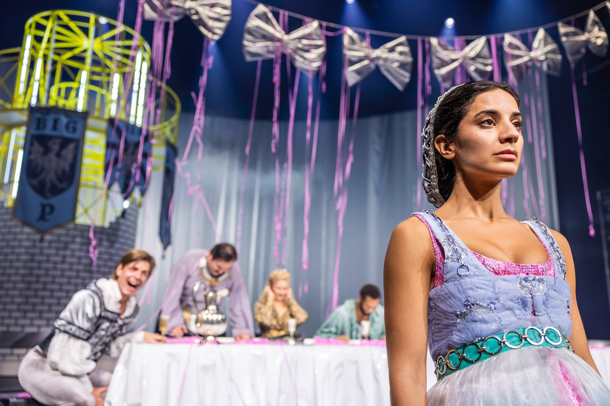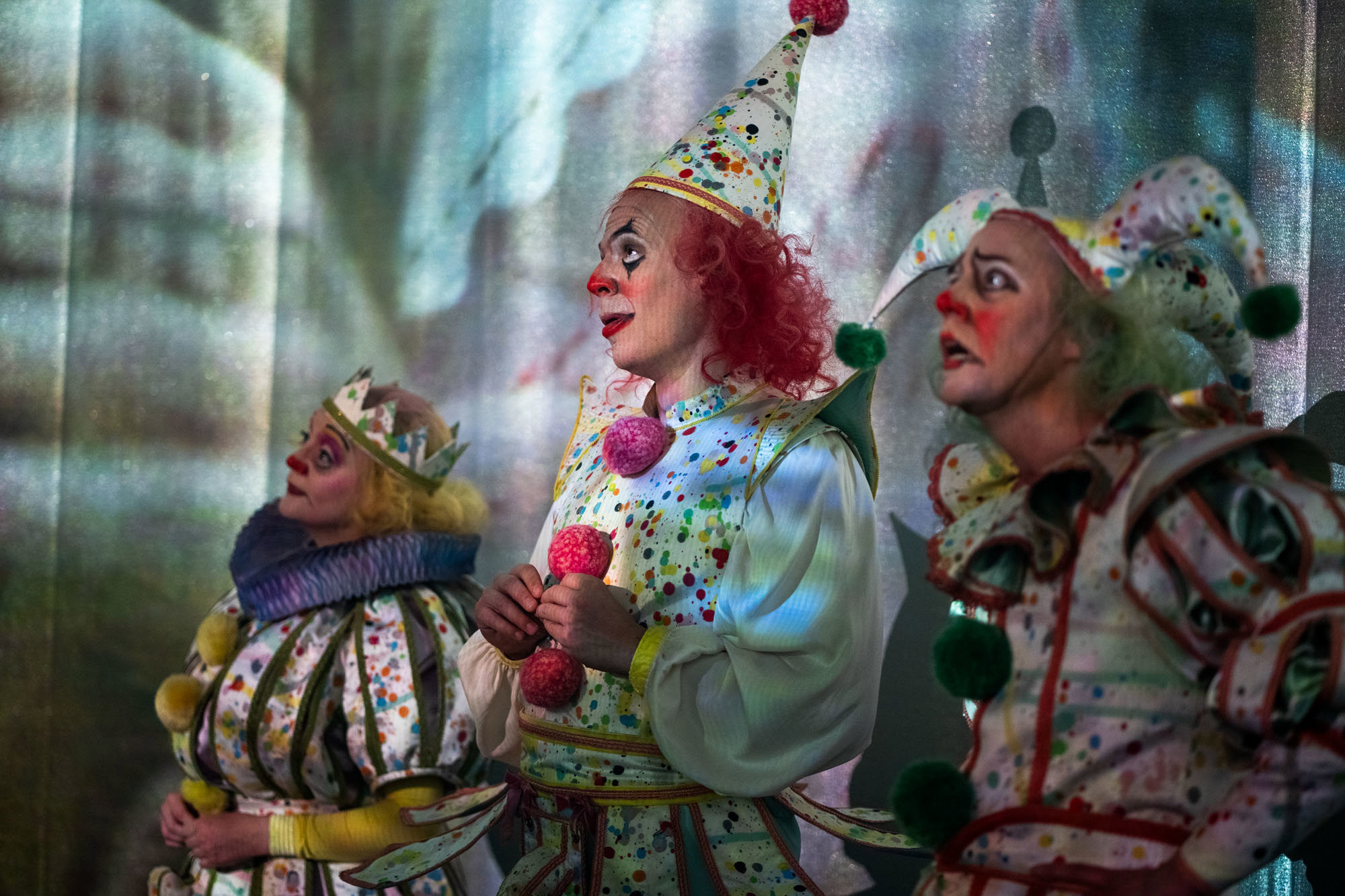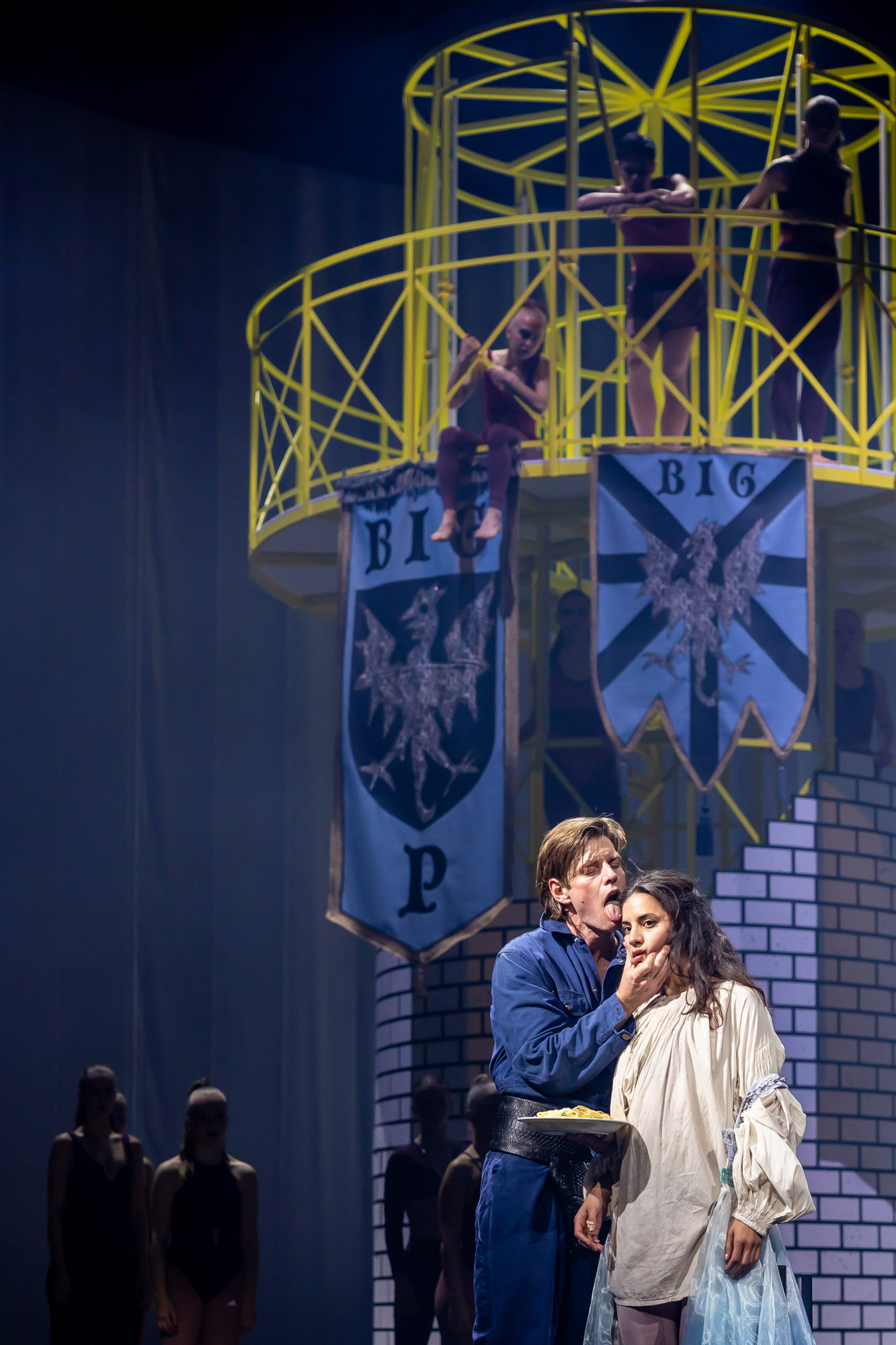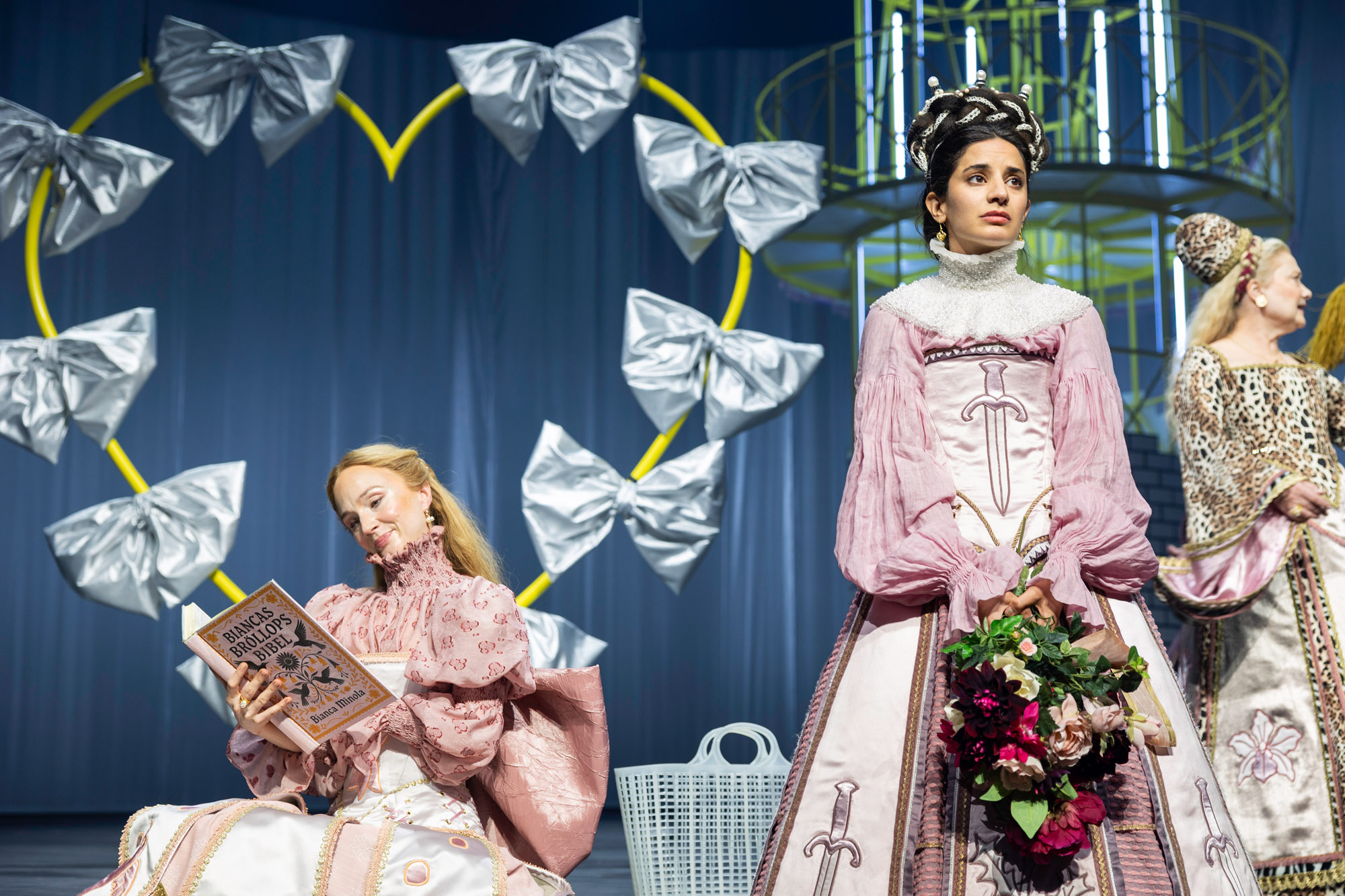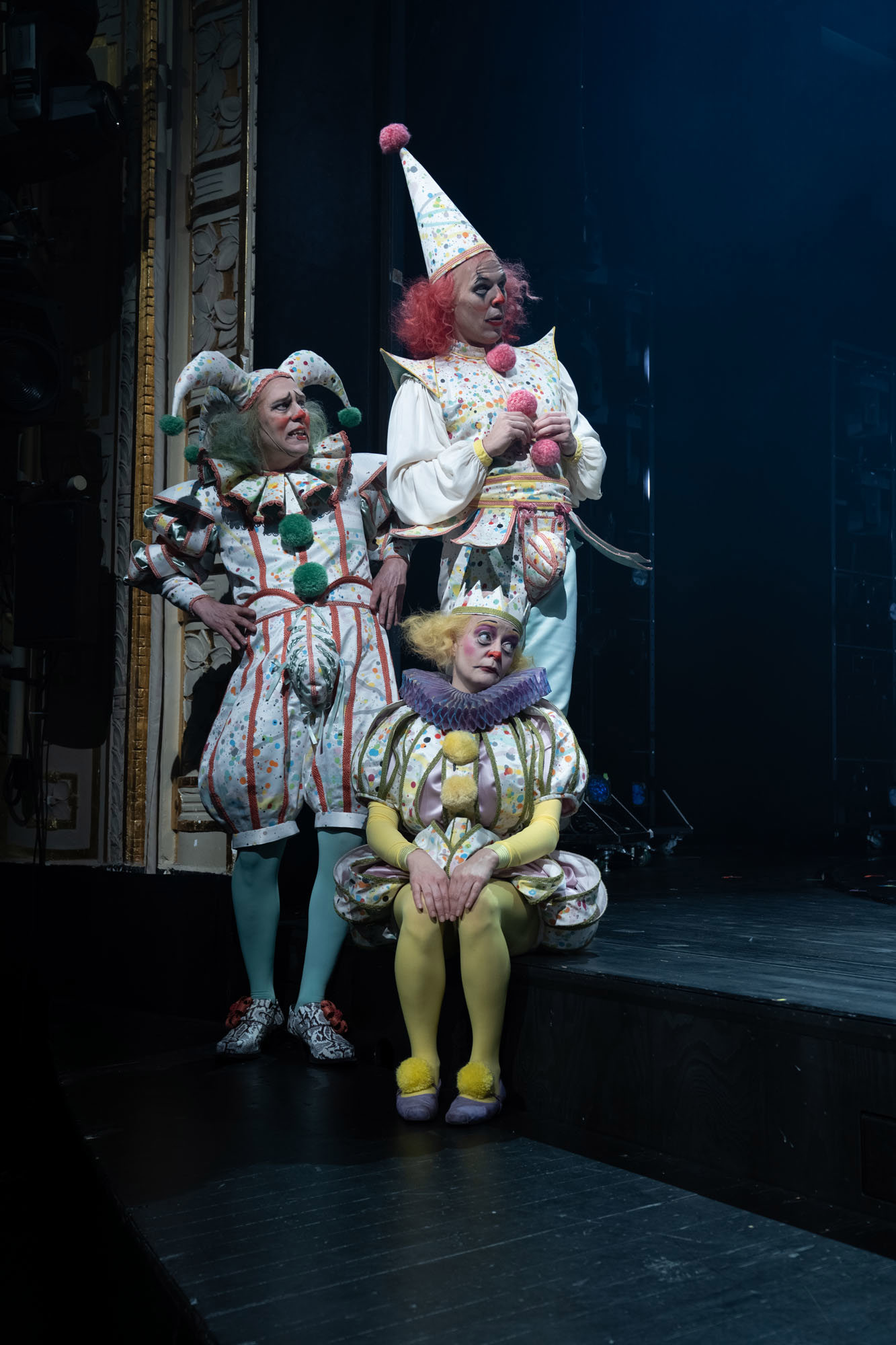 Resultatet? En explosiv, bjussig och maximalistisk föreställning som tar oss till en värld där 1500-tal möter nutid – via 1980-talet. Där clowner rör sig i salongen och reagerar på det som händer på scenen. Och där musiken och 15 dansare från Balettakademin förhöjer stämningen och lockar till fest.