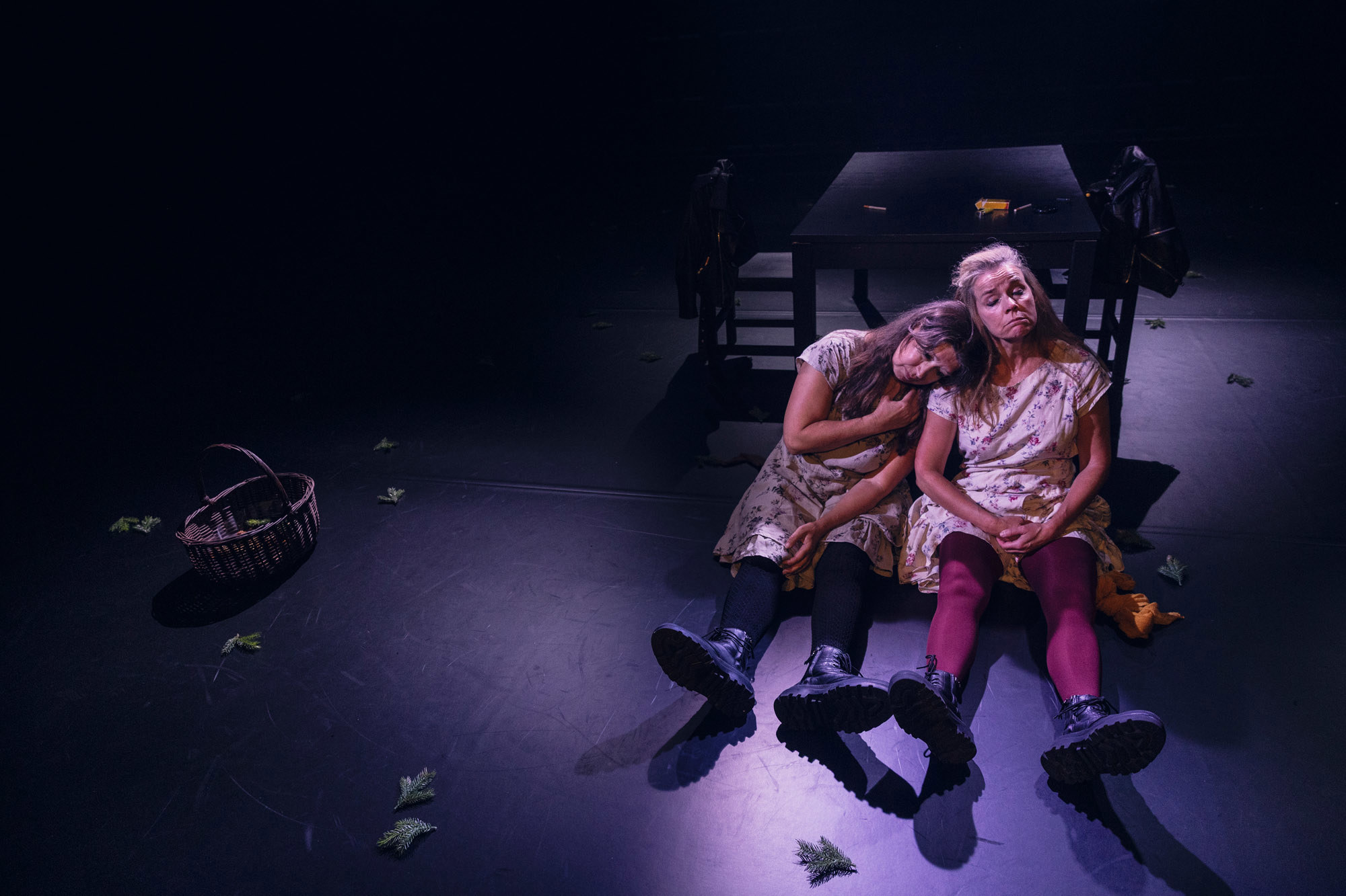 Två kvinnor. En glänta. En skog som aldrig riktigt slutar. Vad som börjar som en lekfull utflykt förvandlas till en känsloladdad kamp mot ensamhet, rädsla och längtan efter att få bli sedd. För vad händer när man inte vet om man finns, om ingen rör vid en? När barndomen glider undan och något nytt skrämmande och ovisst tar vid?